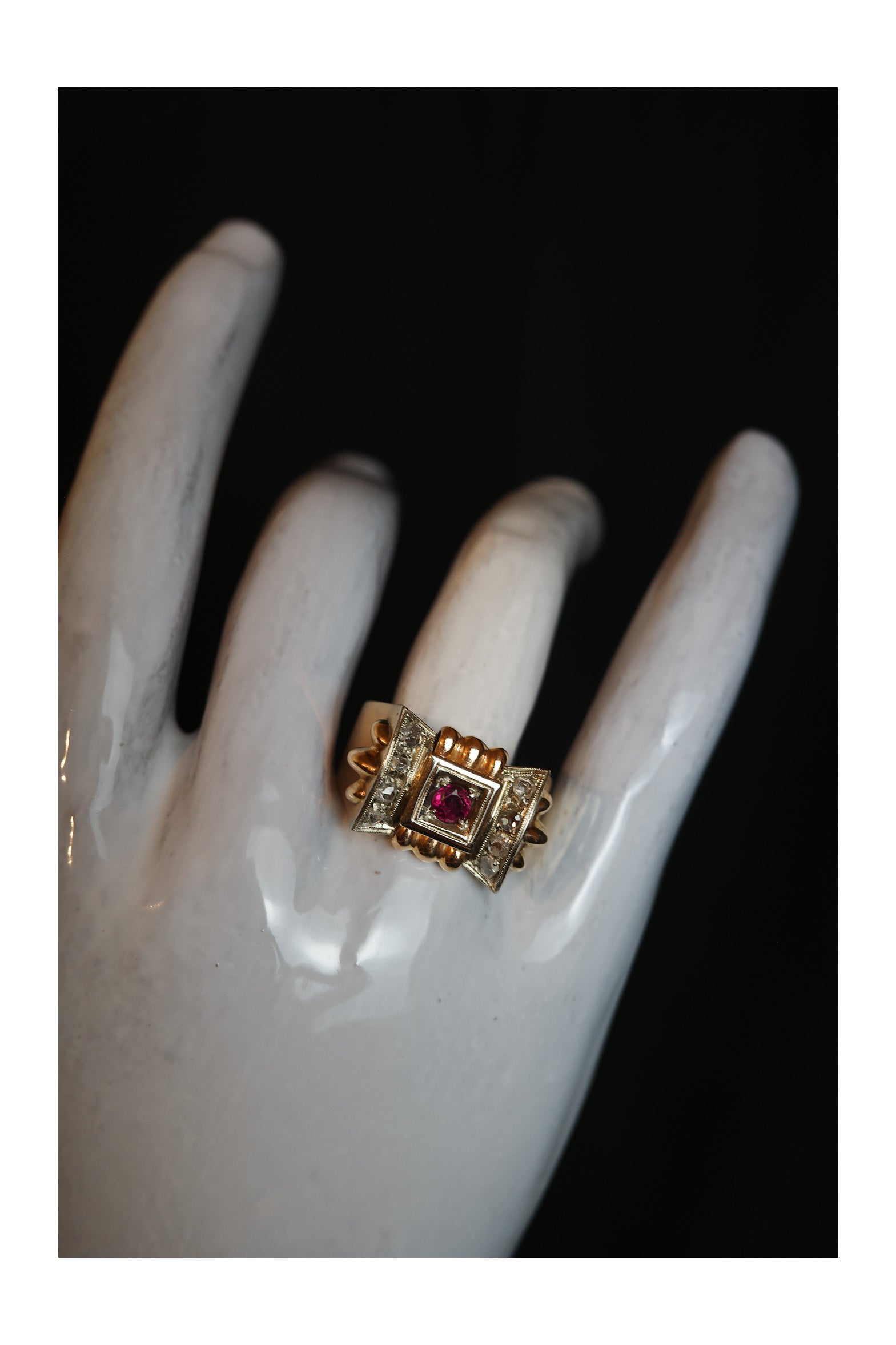 1940s Late Art Deco Ruby & Diamond Ring in 18K Rose Gold