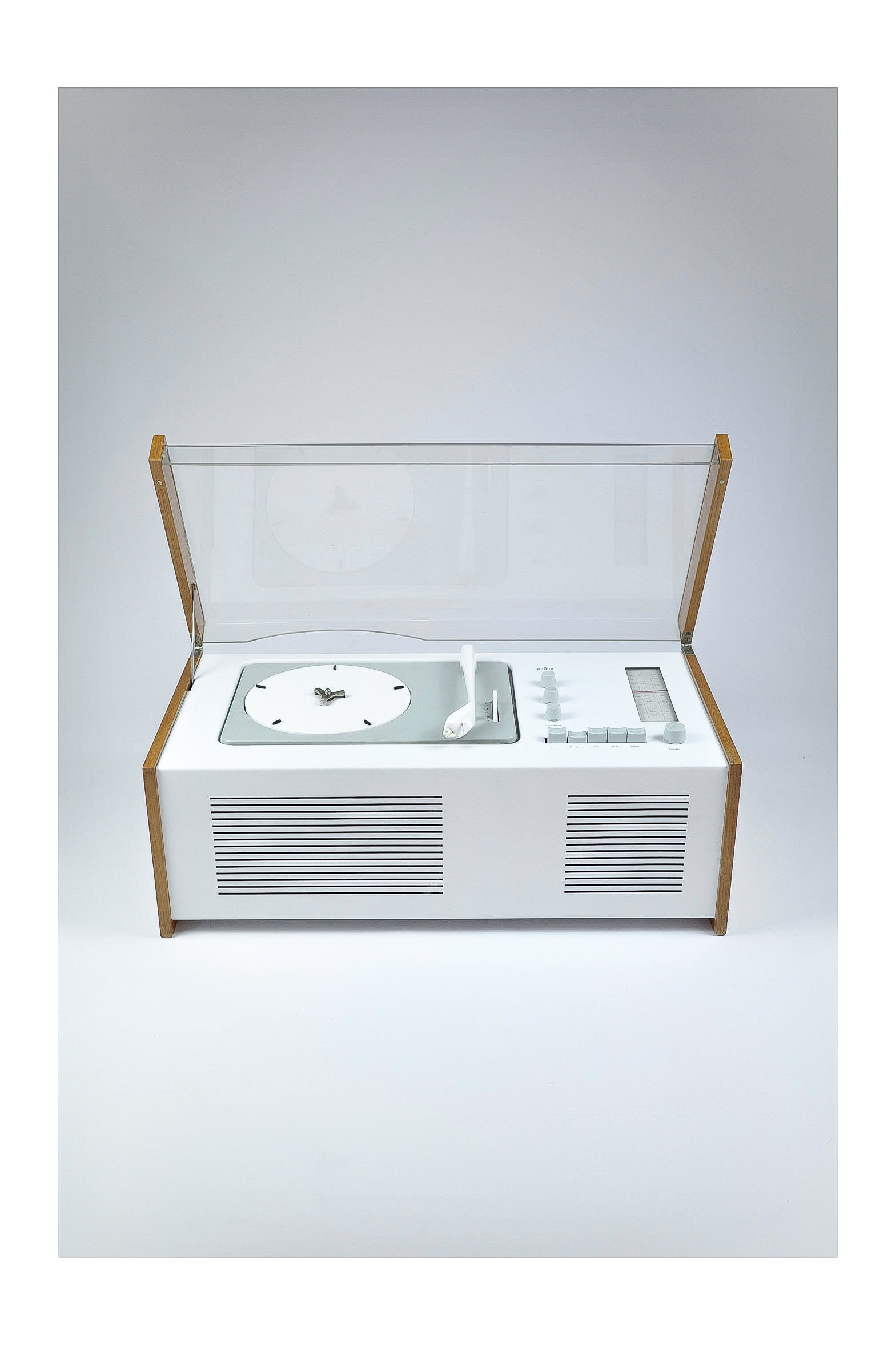 1950年代、ドイツ・Braun社より発表された名作オーディオコンソール「SK 5」。機能美とシンプルさを極限まで追求したそのデザインは、当時のインダストリアルデザインに革新をもたらしました。Dieter Rams(ディーター・ラムス)とHans Gugelot(ハンス・グジェロット)による共同設計により生み出されたこのモデルは、後のモダンデザインの礎を築いたと称されます。アクリル製の透明カバーと、木製フレーム × ホワイトボディのコントラストが美しく、現代のインテリアにも溶け込む洗練された佇まい。オブジェとしても圧倒的な存在感を放つ一台です。